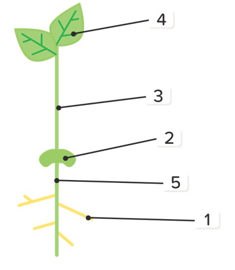 Bagian yang memanjang pada perkecambahan epigeal ditunjukan oleh nomor … yang disebut sebagai ….