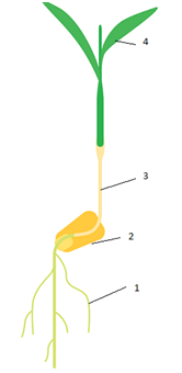 Pada perkecambahan hipogeal, bagian yang mengalami pemanjangan adalah bagian … yang ditunjukkan oleh nomor ….