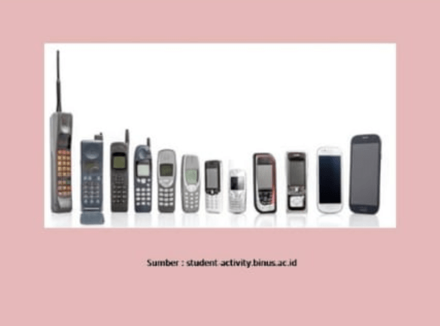 Jika kita perhatikan, bentuk ponsel-ponsel pada gambar itu berbeda-beda, mulai dari awal dibuat alat komunikasi tersebut hingga saat ini. Tentu Anda juga bisa mengamati hal itu secara nyata di sekitar Anda. Dalam sejarah hal yang demikian dikenal dengan konsep...