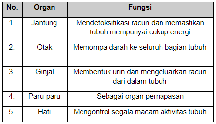 Pasangan yang tepat antara organ dan fungsinya ditunjukkan oleh nomor ….
