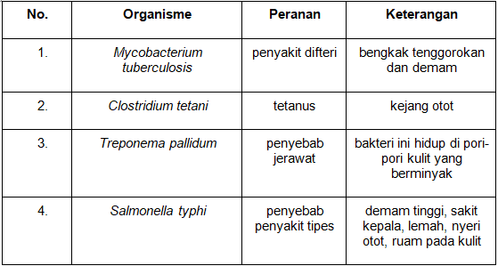 Berdasarkan isi tabel di atas, pasangan organisme dan peranan yang tepat ditunjukkan oleh nomor….