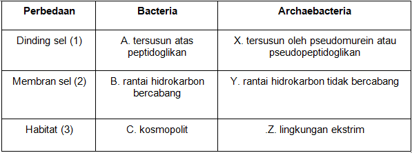 Pasangan yang tepat berdasarkan isi tabel di atas adalah….