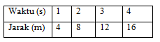 Perhatikan jarak yang ditempuh benda dan waktu yang dibutuhkan berikut ini :