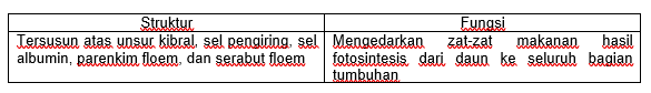 Struktur yang dimiliki beserta fungsi dari jaringan tersebut dalam tabel berikut yang benar adalah . . . .
