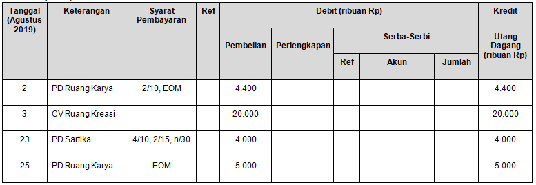 Rekapitulasi jurnal pembelian yang benar berdasarkan data tersebut adalah ….