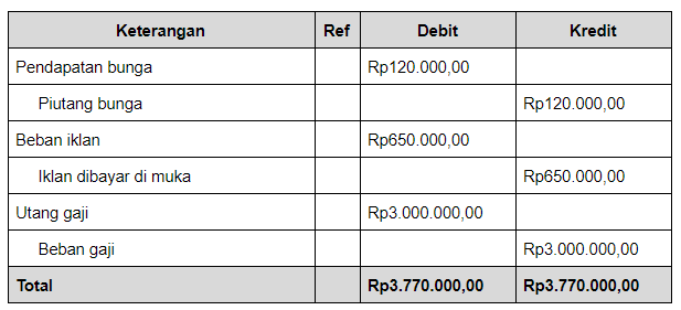 Besarnya keseimbangan jurnal pembalik berdasarkan data tersebut adalah ….
