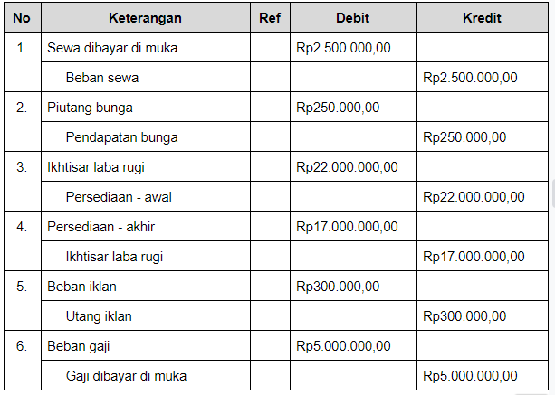 Perhatikan jurnal penyesuaian berikut untuk menjawab soal nomor 6-10.