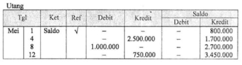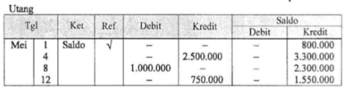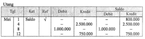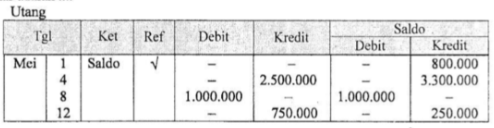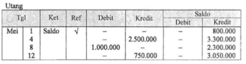 Jika perusahaan XYZ memiliki saldo utang sebesar Rp800.000,00. Posting ke buku besar yang benar adalah ....