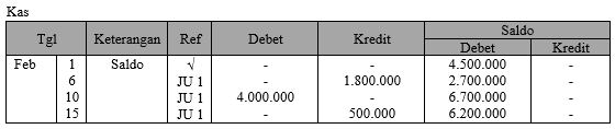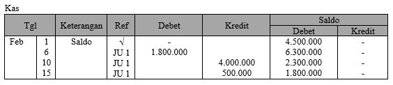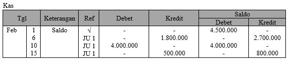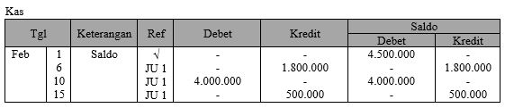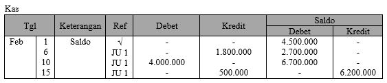 Jika kas mempunyai saldo sebesar Rp4.500.000,00, posting ke buku besar yang benar adalah ....
