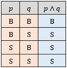Ingat kembali tabel kebenaran untuk konjungsi sebagai berikut.