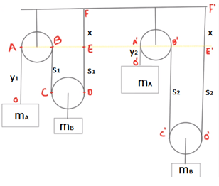 Apabila benda A bergerak keatas dan benda B bergerak ke bawah, maka persamaan percepatan yang benar adalah ….