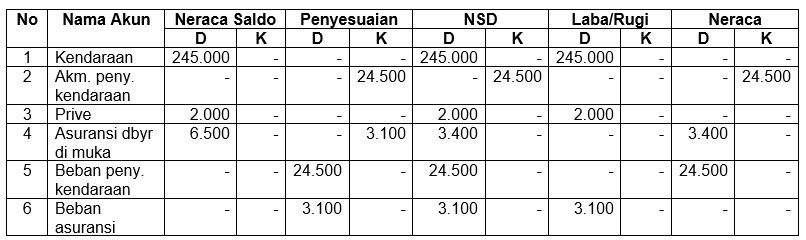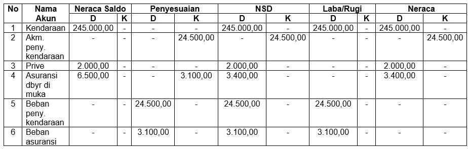 Perhatikan kertas kerja berikut (dalam ribuan rupiah)!