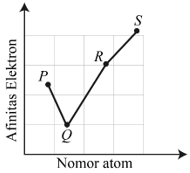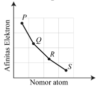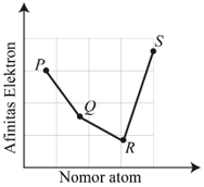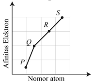Grafik yang tepat untuk menggambarkan hubungan antara afinitas elektron dengan nomor atom keempat unsur tersebut adalah ….