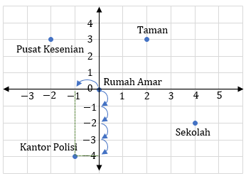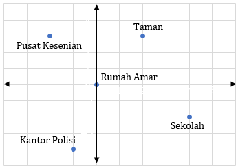 Posisi kantor polisi dengan titik acuan yaitu Rumah Amar terletak pada koordinat ....