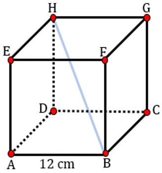Panjang garis BH jika diketahui panjang rusuk kubus di atas 12 cm adalah ….