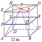 Titik A, B, C, dan D terletak pada bidang sisi bagian bawah. Titik T merupakan titik perpotongan garis diagonal pada bidang sisi bagian atas. Selanjutnya dibuat limas T.ABCD. Jika limas T.ABCD dipotong oleh bidang PQRS dimana titik P, Q, R, S, berturut terletak di tengah garis AE, BF, CG, dan DH. Jika dengan panjang rusuk kubus tersebut adalah , maka tentukan volume limas terpancung bagian bawah.