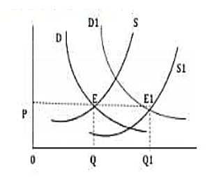 Berdasarkan kurva di atas diketahui bahwa kurva D bergeser ke D1 dan kurva S bergeser ke S1. Maka dapat disimpulkan bahwa ….