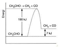 Berdasarkan kurva tersebut, perubahan entalpi untuk reaksi CH3CHO → CH4 + CO adalah…