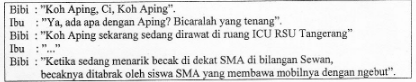 Kalimat yang tepat untuk melengkapi penggalan drama tersebut adalah….