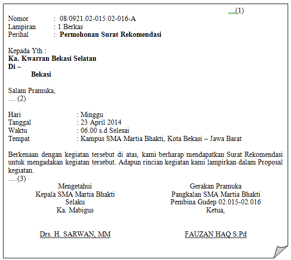 Isi bagian surat yang tepat pada nomor (1) adalah…