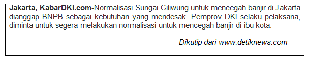 Bagian yang dicetak tebal pada kutipan teks berita di atas merupakan bagian dari struktur teks berita yaitu . . .