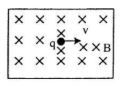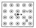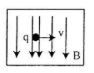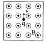 q adalah muatan listrik positif, v adalah kecepatan muatan, B adalah medan magnet dan F adalah gaya. Agar dihasilkan gaya magnet F yang arahnya keluar bidang gambar, maka gambar yang tepat adalah...