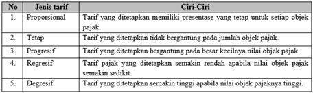 Perhatikan macam-macam tarif pajak berikut.