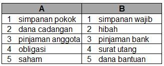 Permodalan koperasi diperoleh dari dua macam sumber, yaitu modal sendiri dan modal pinjaman. Berdasarkan matriks tersebut, yang merupakan modal sendiri adalah ....