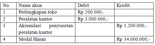 Akumulasi penyusutan peralatan kantor Rp 300.000,-
