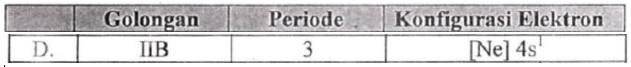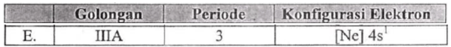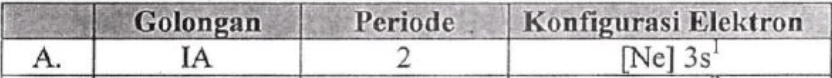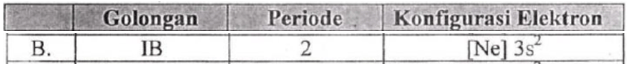 Letak unsur dan konfigurasi elektronnya yang paling tepat adalah... (Nomor atom Ne = 10)
