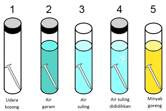 Dari percobaan di atas yang memperlambat proses korosi pada paku adalah....