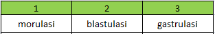 Fase embrionik yang sesuai dengan peristiwa - peristiwa tersebut adalah....