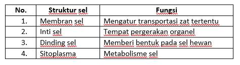Berdasarkan pernyataan di atas, struktur sel dan fungsinya yang tepat adalah….