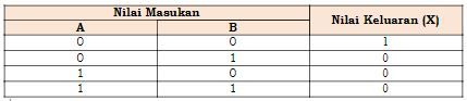 Pernyataan yang benar mengenai pengoperasian gerbang logika NOR adalah ….