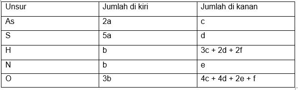 Unsur H : b = 3c + 2d + 2f (persamaan 3)