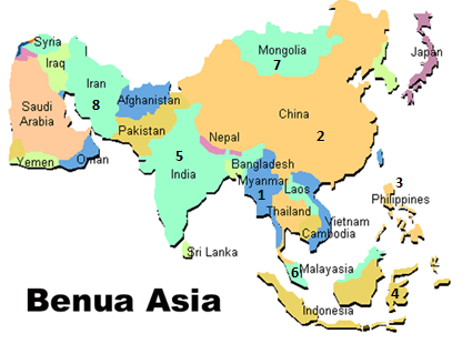 Penduduk di negara bernomor lima jumlahnya lebih banyak dari penduduk di negara bernomor dua.