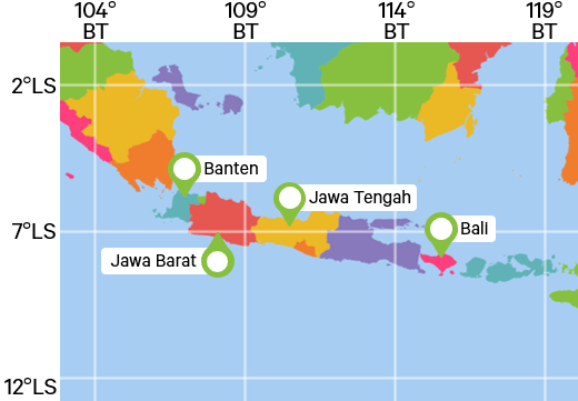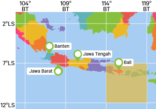 Berikut ini provinsi yang terletak pada koordinat 7°LS – 12°LS dan 114°BT – 119°BT adalah ....