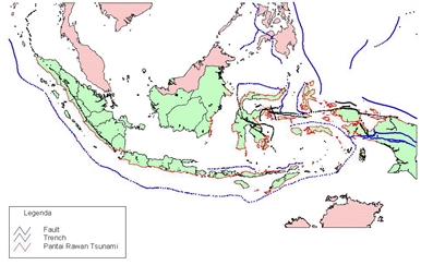 Peta pada gambar di atas menunjukkan daerah-daerah yang rawan terhadap bencana alam gempa bumi dan tsunami. Strategi mitigasi bencana yang tepat untuk dilakukan pada daerah rawan bencana gempa bumi seperti pada peta tersebut adalah....