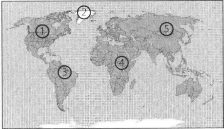 Persebaran fauna zona neartik pada peta ditunjukkan pada nomor ….