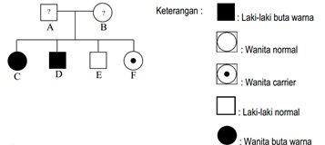 Perhatikan peta silsilah keluarga yang mempunyai riwayat buta warna berikut!
