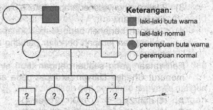 Perhatikan peta silsilah pewarisan sifat buta warna berikut!