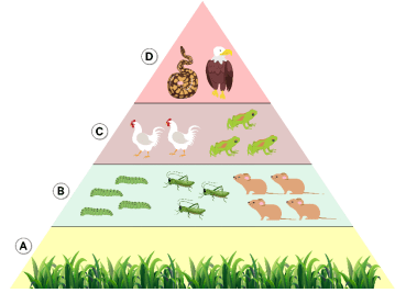 Berdasarkan piramida ekologi di atas, organisme autotrof terdapat pada tingkatan yang ditunjukan oleh huruf ….