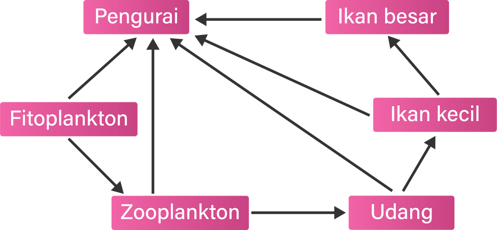 Jika banyak manusia yang memburu atau mengambil udang dari perairan tersebut sehingga populasi udang menurun tajam, dampak yang akan terjadi adalah ....