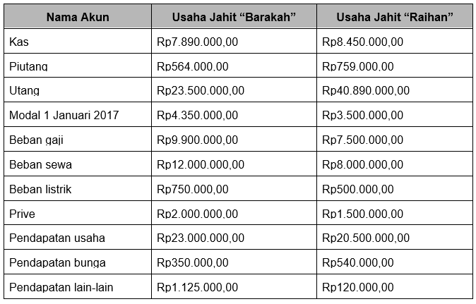 Perhatikan sebagian data keuangan berikut ini!