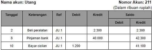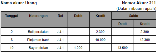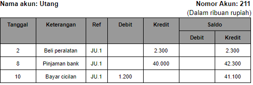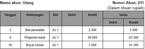 Posting ke dalam buku besar untuk akun utang yang benar adalah ….