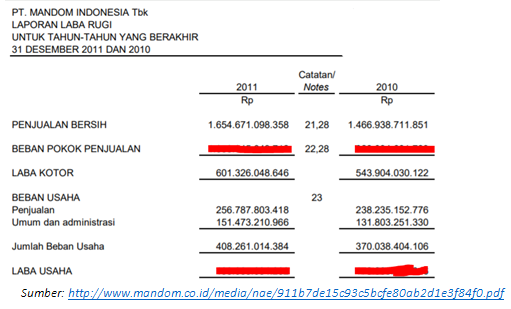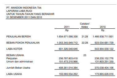 Laba usaha 2010 lebih besar dibandingkan tahun 2011 disebabkan beban usaha tahun 2011 lebih besar dibandingkan tahun 2010