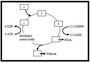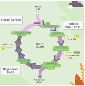 RuBP, 3 fosfogliserat, dan fosfogliseraldehid