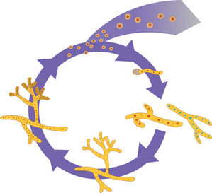 merupakan reproduksi aseksual membentuk konidiospora