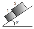 Dua balok yaitu balok 1 dan balok 2 diletakkan pada bidang miring dengan sudut