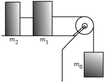 Anggap katrol licin dan koefisien gesekan antara balok 1 dan balok 2 terhadap bidang adalah . Hitunglah percepatan yang timbul pada sistem dalam gambar!
